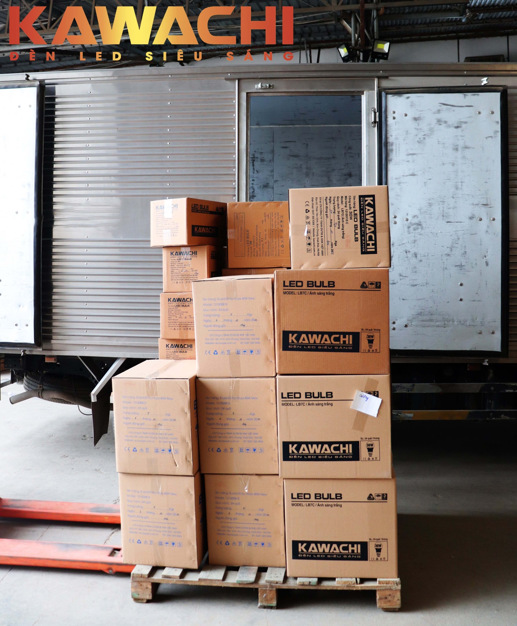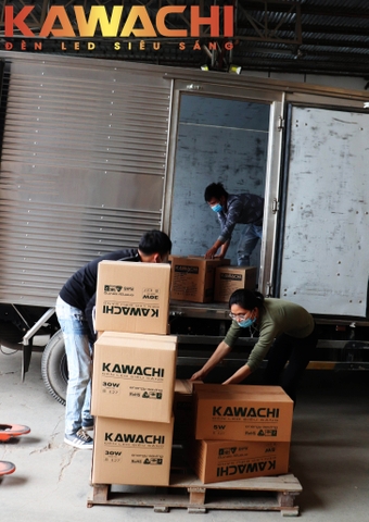 Xe hàng đến những thùng hàng lớn nhỏ được vận chuyển lên xe thật cẩn thận. Trước khi đóng thùng, bóng đèn đều được kiểm tra kĩ trước khi đóng để giao tới tay khách hàng.