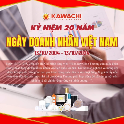 Nhân kỷ niệm Ngày Doanh nhân Việt Nam, KAWACHI trân trọng gửi đến Quý đối tác, Quý khách hàng cùng cộng đồng doanh nhân Việt lời chúc mừng tốt đẹp nhất. Chúc các Doanh nhân luôn mạnh khỏe, vững tâm, bền trí, đưa doanh nghiệp của mình không ngừng phát triển và có nhiều đóng góp tích cực cho sự thịnh vượng chung của đất nước.
