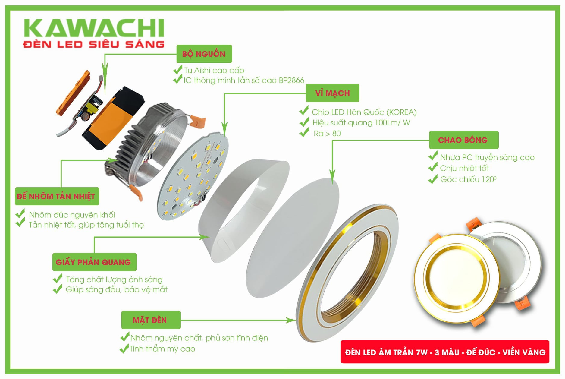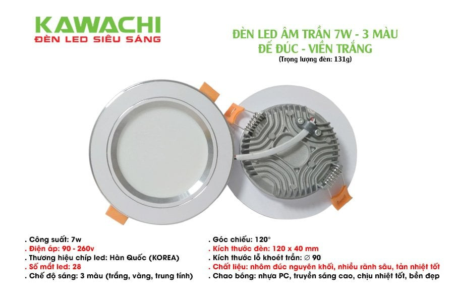 Thì đèn LED DOWLIGHT đổi màu 3 chế độ KAWACHI là sự lựa chọn hoàn hảo.